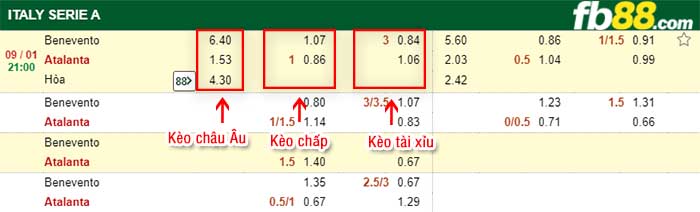 Hướng dẫn đặt kèo Benevento vs Atalanta tại nhà cái uy tín FB88