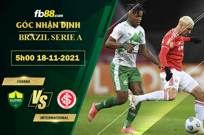 Soi kèo Cuiaba vs Internacional 5h00 ngày 18/11/2021. Sau khi quật ngã Atletico PR  với tỷ số 2-1 trên sân nhà ở lượt ra sân vừa qua thì Internacional  sẽ có chuyến làm khách và đối đầu với Cuiaba trong lượt trận tới. Không có được kết quả tốt ở mùa giải này đang khiến Internacional  rất cần có điểm số để nâng cao thành tích. Liệu rằng chuyến làm khách sắp tới sẽ gây ra cho Internacional  nhiều khó khăn trên hành trình chinh phục giải đấu ? Cùng FB88 cập nhật tỷ lệ kèo bóng đá Brazil nhận định cặp đấu Cuiaba vs Internacional và phân tích tỷ lệ kèo châu Âu, Châu Á cùng các chuyên gia giúp người chơi thắng lớn.