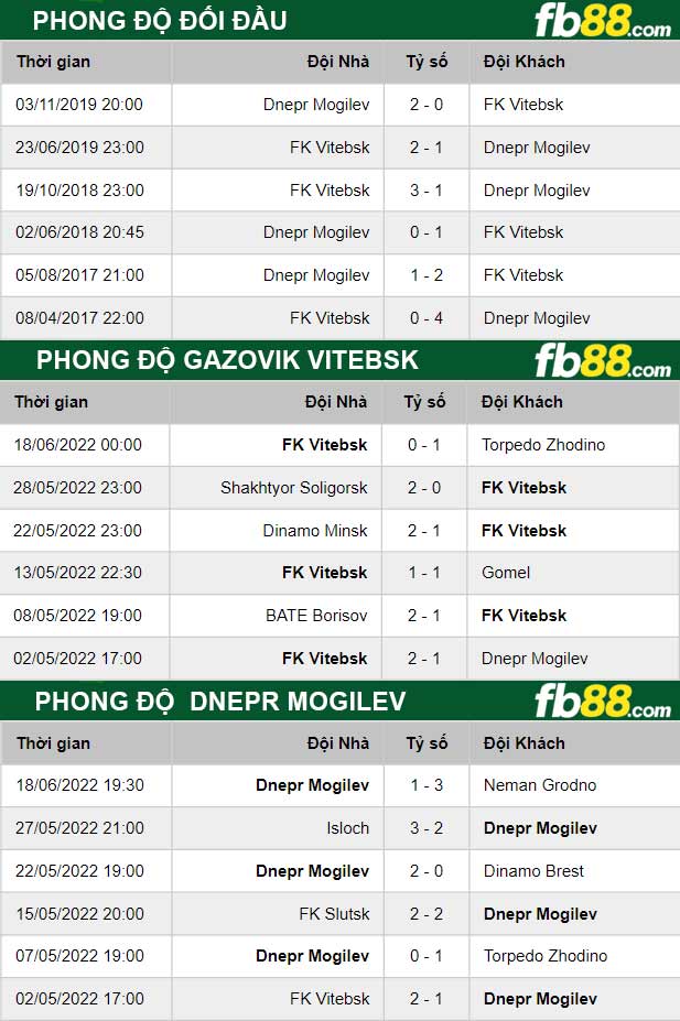 - Dnepr Mogilev: 1 thắng 1 hòa 3 thua trong 5 trận đấu gần nhất