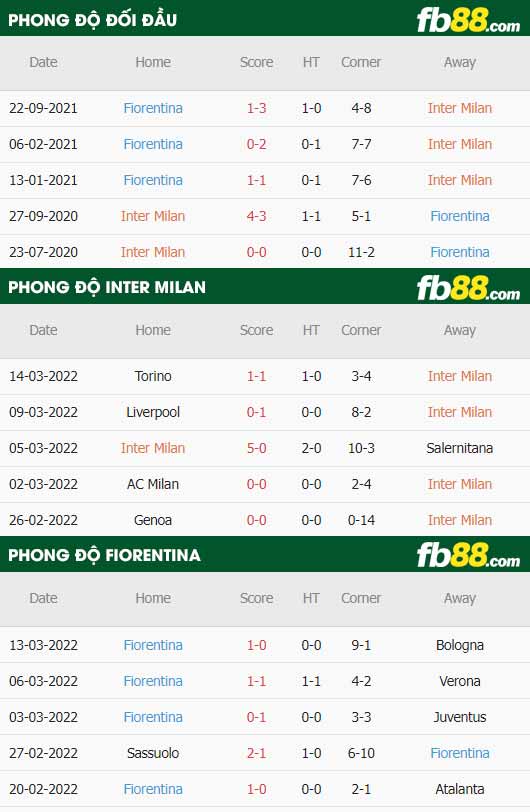 Soi kèo Inter Milan vs Fiorentina 0h00 ngày 20/3/2022. Inter Milan vs Fiorentina sẽ tranh đấu một trận kịch tính nhất trong trận ra quân đầu tuần tới. Top 3 mạnh nhất Inter Milan đang sở hữu đội hình và phong độ áp đảo hơn hẳn đội khách. Họ đang nỗ lực cao nhất để nhanh chóng mang về điểm số 3 điểm chiến thắng trọn vẹn. Đăng nhập FB88 cùng chuyên gia phân tích trận bóng, kèo bóng đá trực tuyến để cá cược online thắng lớn tại nhà cái uy tín FB88.