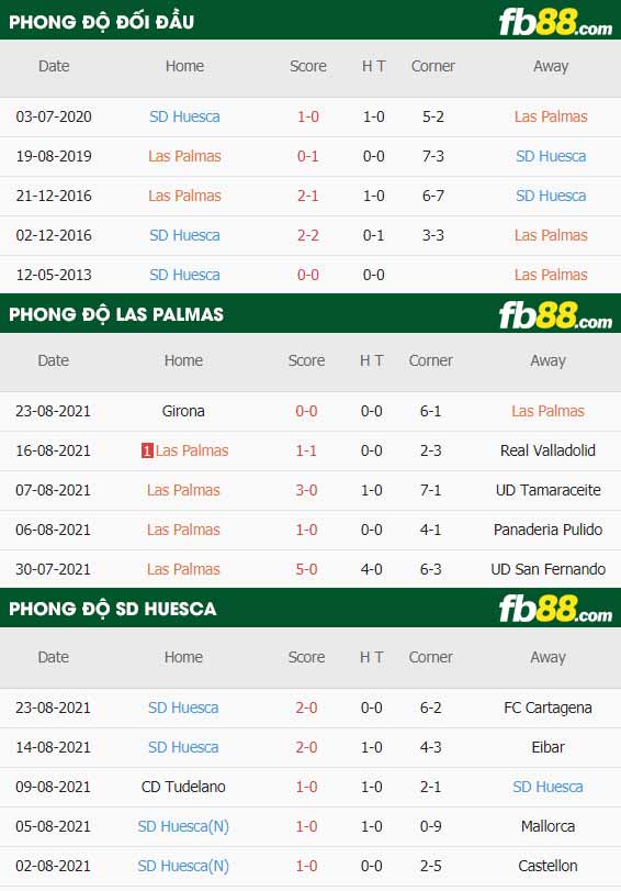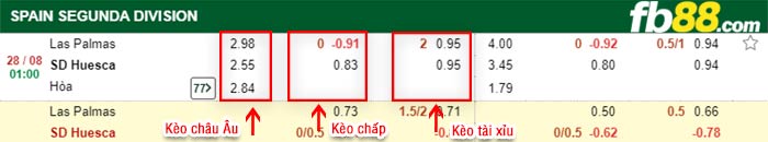 Soi kèo Las Palmas vs Huesca 1h00 ngày 28/08/2021. Huesca đang hướng đến mục tiêu có được tấm vé thăng hạng, họ đang có sự khởi động khá tốt trong mùa giải này. Trận đấu tới họ chỉ phải đối đầu với đội bóng không quá mạnh Las Palmas thì đây là cơ hội cho Huesca giành được chiến thắng. Cùng giới chuyên môn nhà cái FB88 cập nhật tip soi kèo bóng đá, nhận định tỷ lệ và đưa ra tỷ số chính xác.