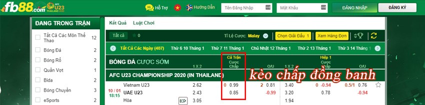 Hướng dẫn đặt kèo U23 Việt Nam vs U23 UAE tại nhà cái uy tín FB88