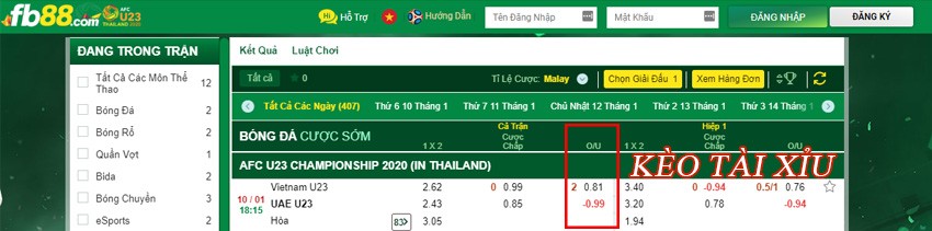 Nhận định soi kèo u23 Việt Nam vs U23 UAE 17h25 ngày 10/1/2020. Soi kèo u23 vn vs u23 uae chuẩn tại FB88, đủ các kèo tài xỉu, cược chấp tỷ lệ kèo cao vn vs uae.