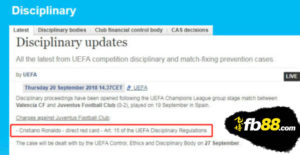 欧足联官方宣布对C罗红牌进行调查 27日将做出处理